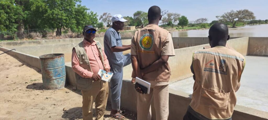 Dans le cadre de la mise en œuvre du projet de pisciculture intégrée aux cultures maraîchères, une mission de supervision conjointe a été effectuée sur les sites de la ferme piscicole et du périmètre maraîcher d’Ourafane. L’équipe terrain de l’ONG AGIR, accompagnée du comité local